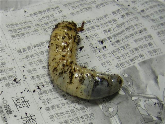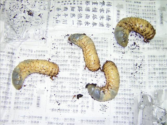 那次換土,就發現兩隻全身發黑的幼蟲,一動也不動。其他活著的幼蟲也顯得體積較小。驚愕的感覺,讓我整晚都說不出話來,以諾的眼睛也一直濕濕的。「半坪山」的老闆看以諾可憐,為了安慰他,特別大方地送他一隻好肥大的三齡幼蟲。