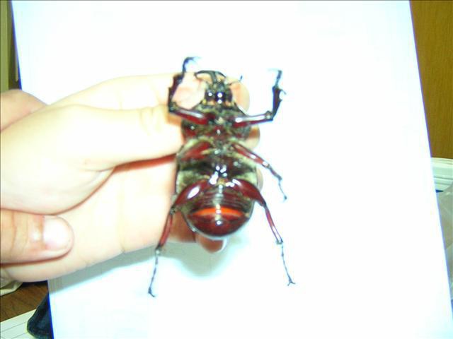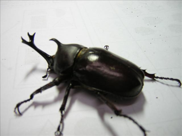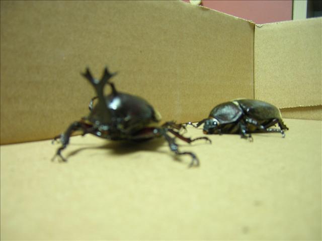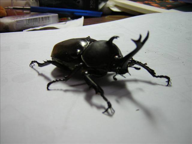 今天傍晚,「半坪山」送的大尺寸公蟲也「出土」了。以諾說,剛開始看牠六腳朝天,以為牠也死了。一碰觸牠,牠竟很兇悍地要跟人戰鬥,還一邊走一邊發出聲音,一副雄赳赳的威風模樣,逗趣極了!